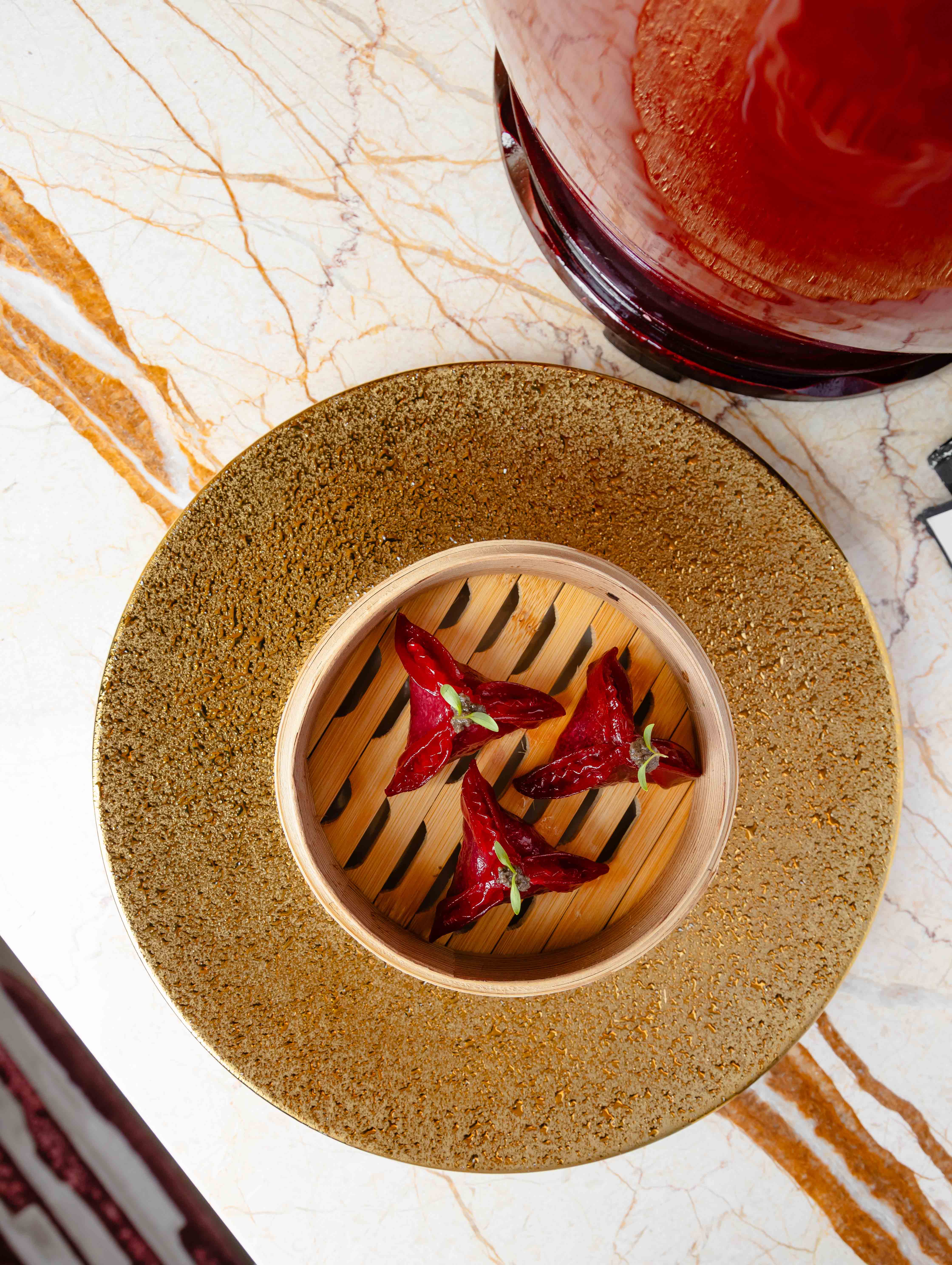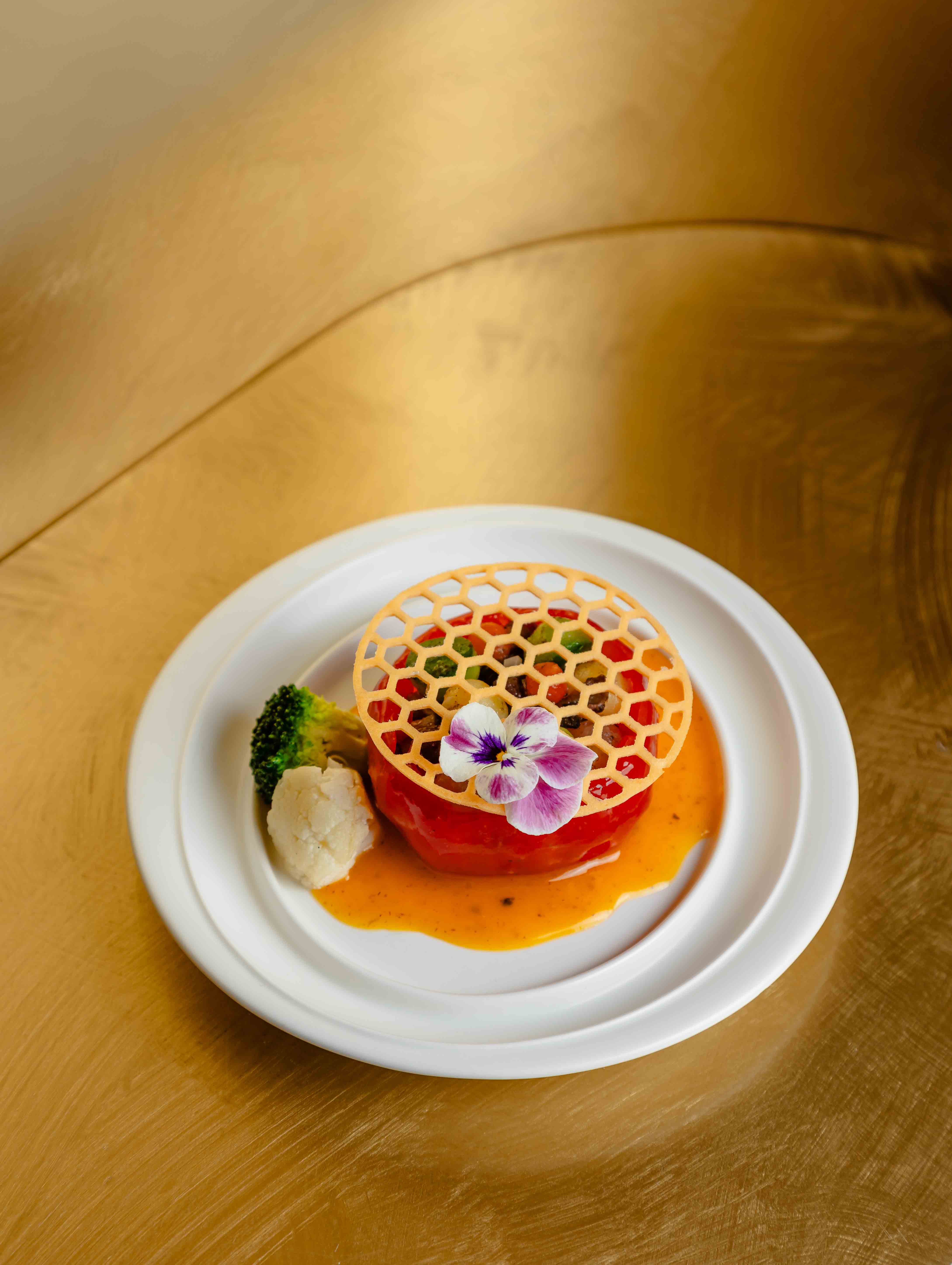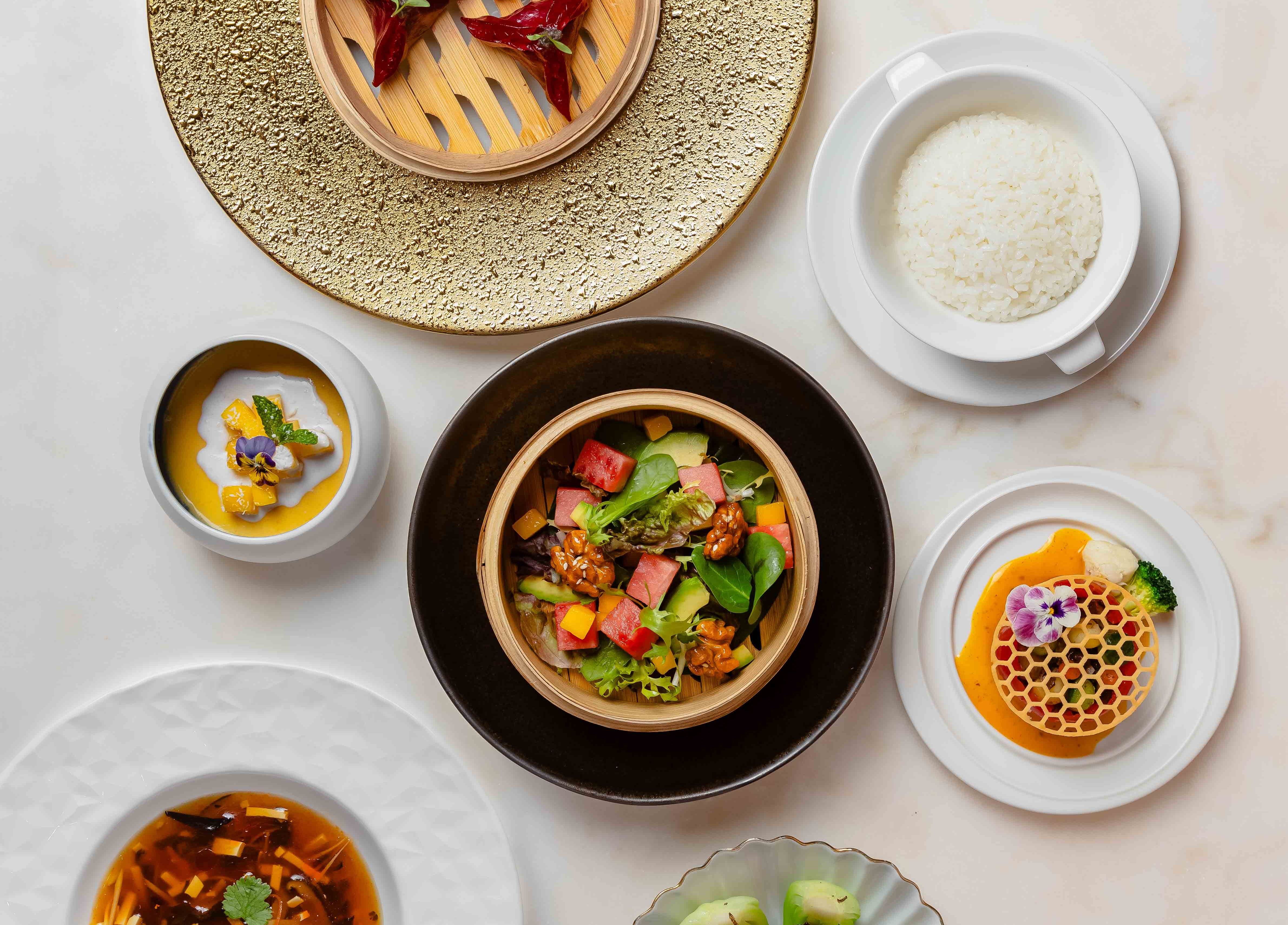 В ресторане высокой китайской кухни именитый шеф-повар Джеки Ву предлагает свой взгляд на постное меню с аутентичным колоритом. Он разработал сет, в который вошел микс салатов с авокадо, манго и карамелизированным грецким орехом с кунжутом, дим-самы на пару со свеклой, суп тофу с грибами шиитаке, ростками бамбука и имбирем, а также тушеные помидоры, фаршированные сезонными овощами с тыквенно-трюфельным соусом. Продолжают сет капуста бок-чой со смесью грибов и трюфеля и фирменный рис на пару. В качестве десерта — кокосово-манговый пудинг.