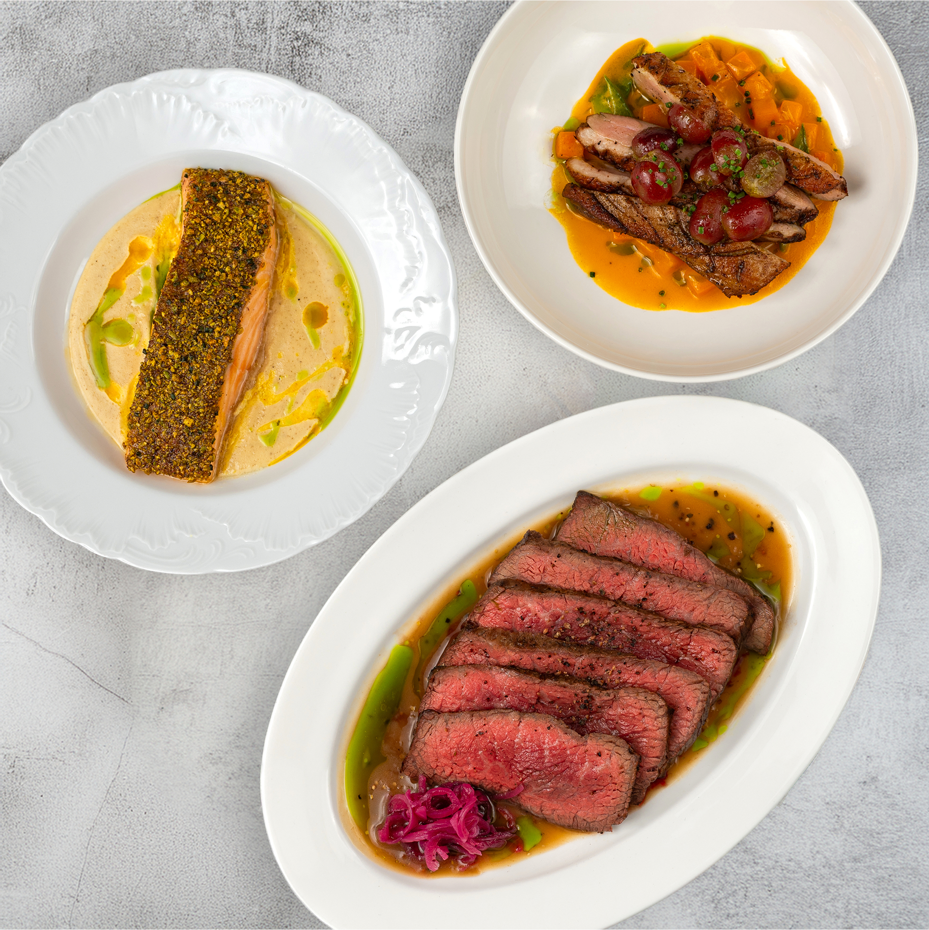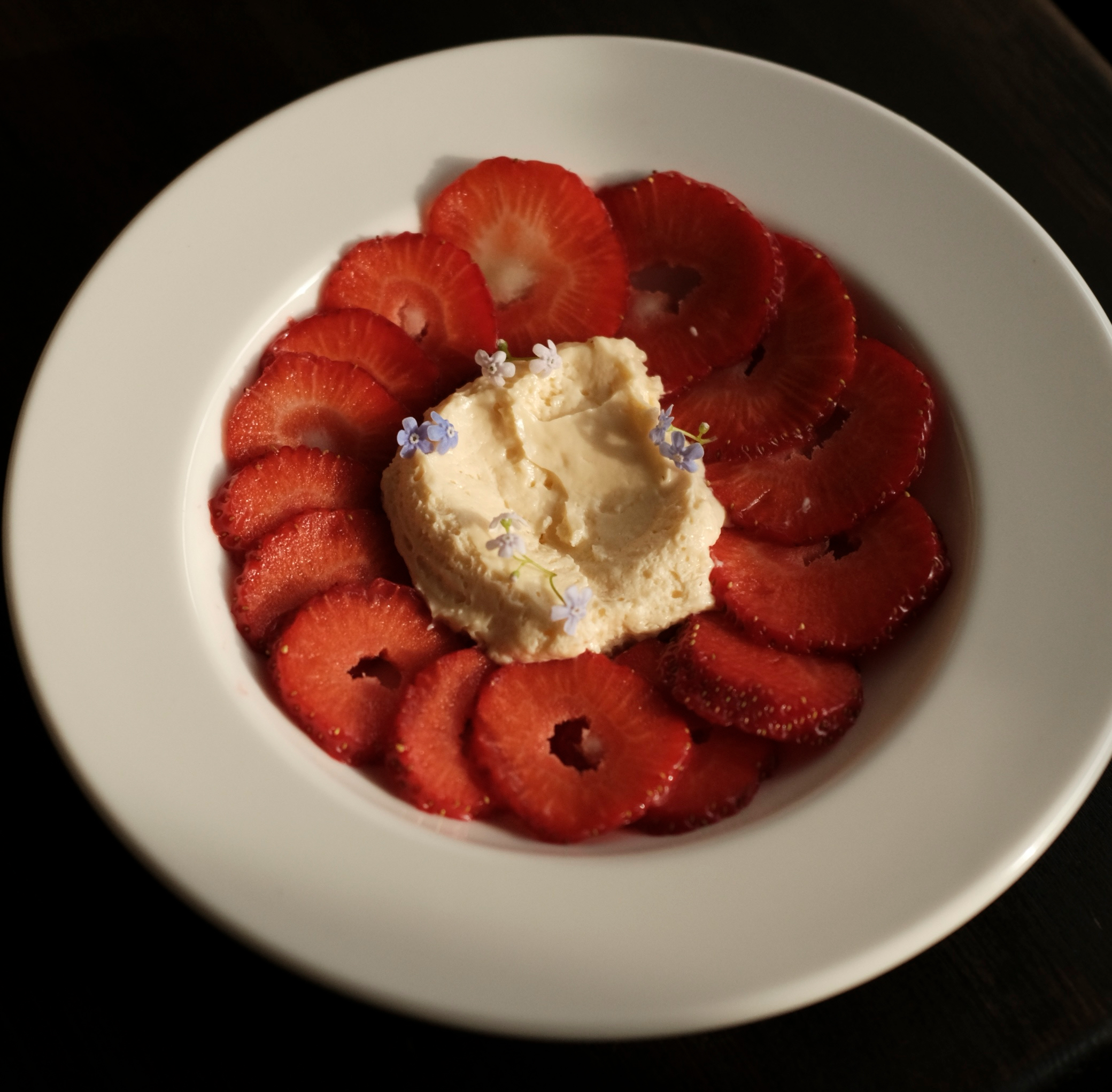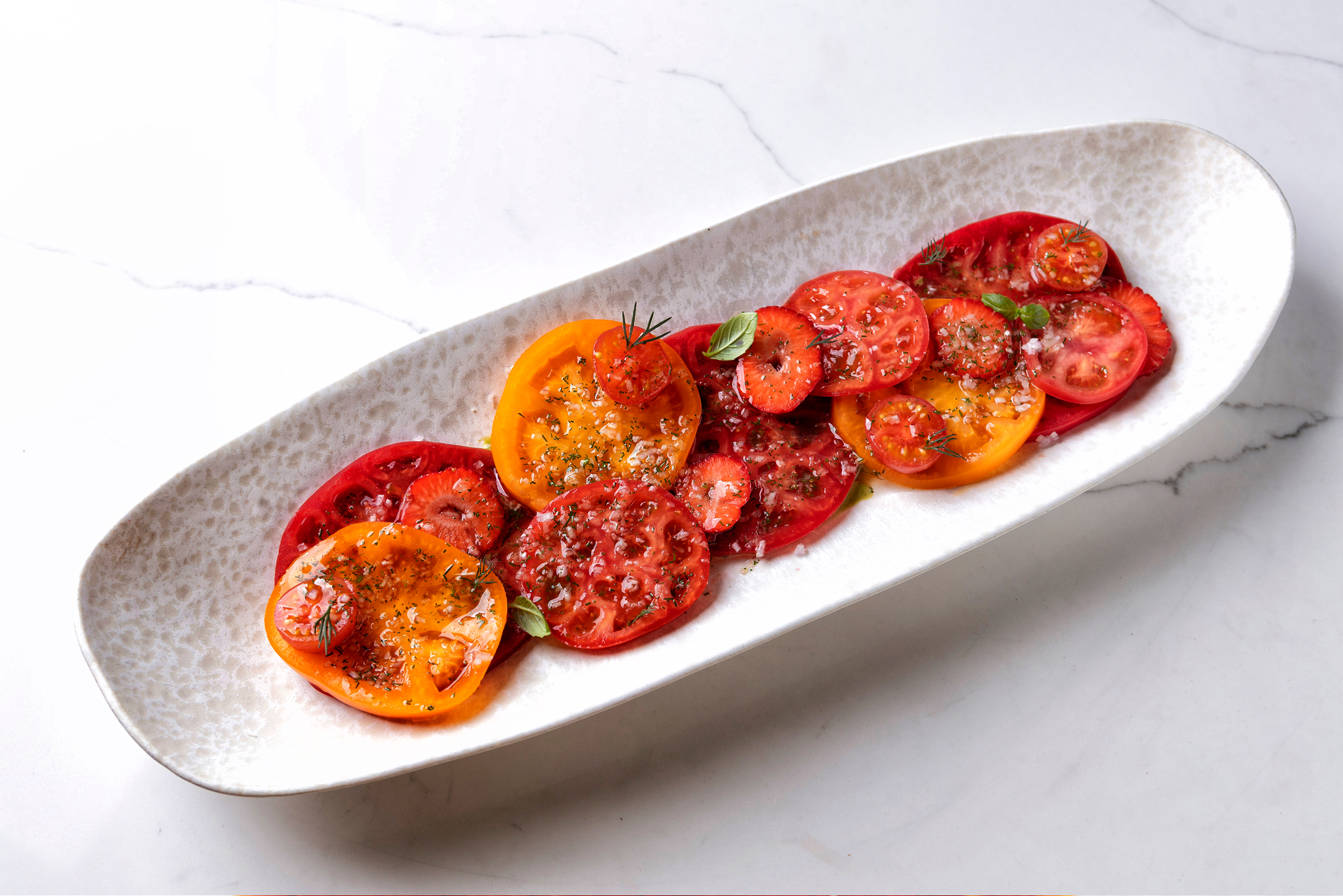 Шеф-повар Алексей Волков в летнем меню вдохновлялся сезонными продуктами, первыми ягодами и травами. В карпаччо из томатов Волков использует бычье сердце, сладкие узбекские, желтые бакинские и зеленые маринованные черри, огуречный суп подает с мацони и мороженым из хрена и йогурта, а буррату — с цитрусами. Кальмары шеф фарширует рублеными лангустинами, чуррос готовит в виде спиралек и сервирует крабом, а равиоли дополняет томлеными хвостами и угрем со страчателлой. На десерт — клубника со сливками и дынный беллини.