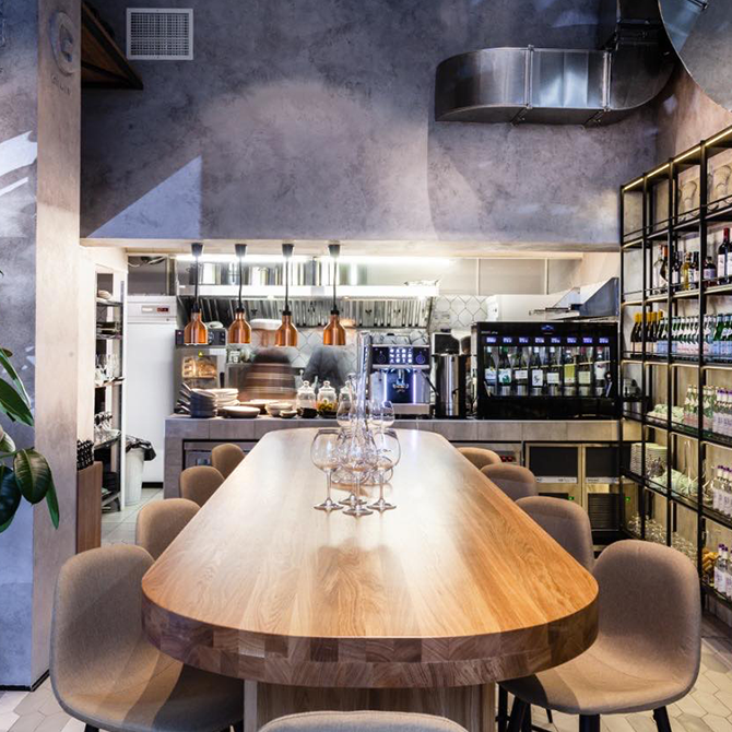 Коллаборация компании Grape и рестораторов Сергея Крылова и Рината Кузина — небольшое двухэтажное пространство Grape Wine Bar на Новинском бульваре. За кухню отвечает шеф-повар Андрей Лихачев. В меню, помимо классических закусок к вину, — крем-суп из сельдерея с лангустином и черным трюфелем (640 рублей), лангустины на гриле (990 рублей), крудо из сибаса (520 рублей). В карте вин представлено более 150 наименований, по бокалам — 20 (цена за бокал от 250 рублей). Большой выбор петнатов, игристых и шампанских вин — от небольших рекальтантов до Сицилии, Португалии, Германии и Испании.