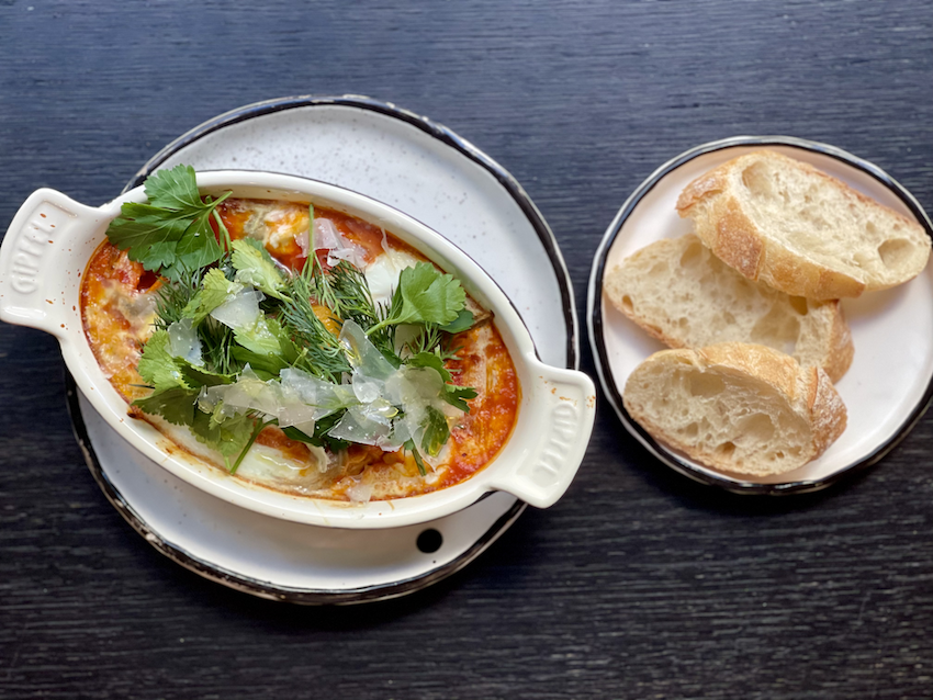 К весеннему сезону шеф Тимофей Сулима вместе с командой поваров обновили меню завтраков и добавили новые позиции: шакшуку (580 р.), омлет с пастрами и сальсой из печеного перца с добавлением пармезана (690 р.). Из сладких позиций — пышный датский блин, запеченный в духовке, с пеканом, голубикой и крем фрешем (450 р.). Появились утренние коктейли на основе кавы: Flør Spritz 2.0 с добавлением ревеня, ангостуры и свежей клубники, Bellini с персиковым пюре или Iris с вермутом, лавандой и алоэ (любой — 700 р.). Более терпкие варианты: Gina на джине с бергамотом и кафирским лаймом (700 р.) или Smoky Negroni на травяном ликере амаро, мальбек и мескаль с добавлением тимьяна (800 р.).