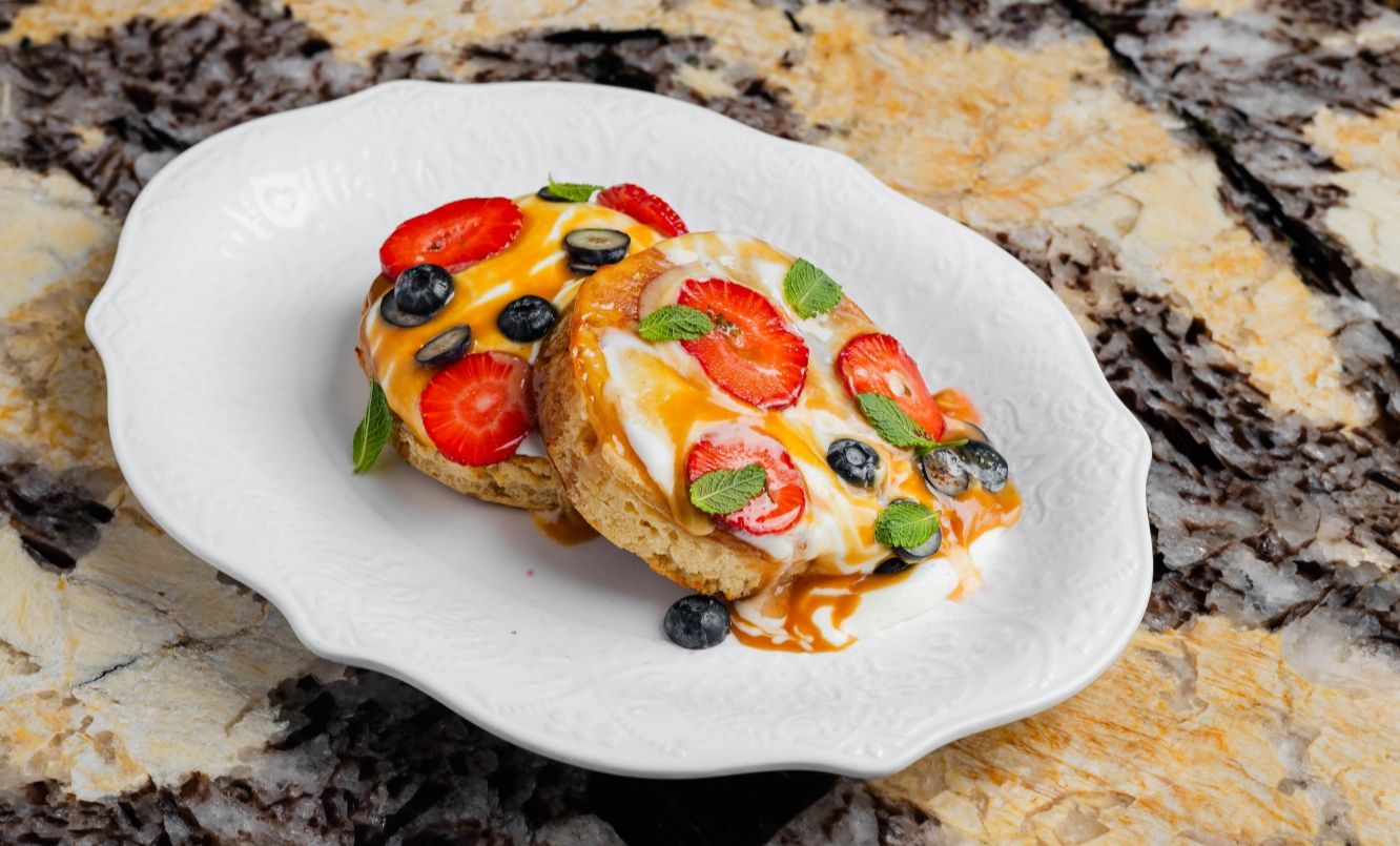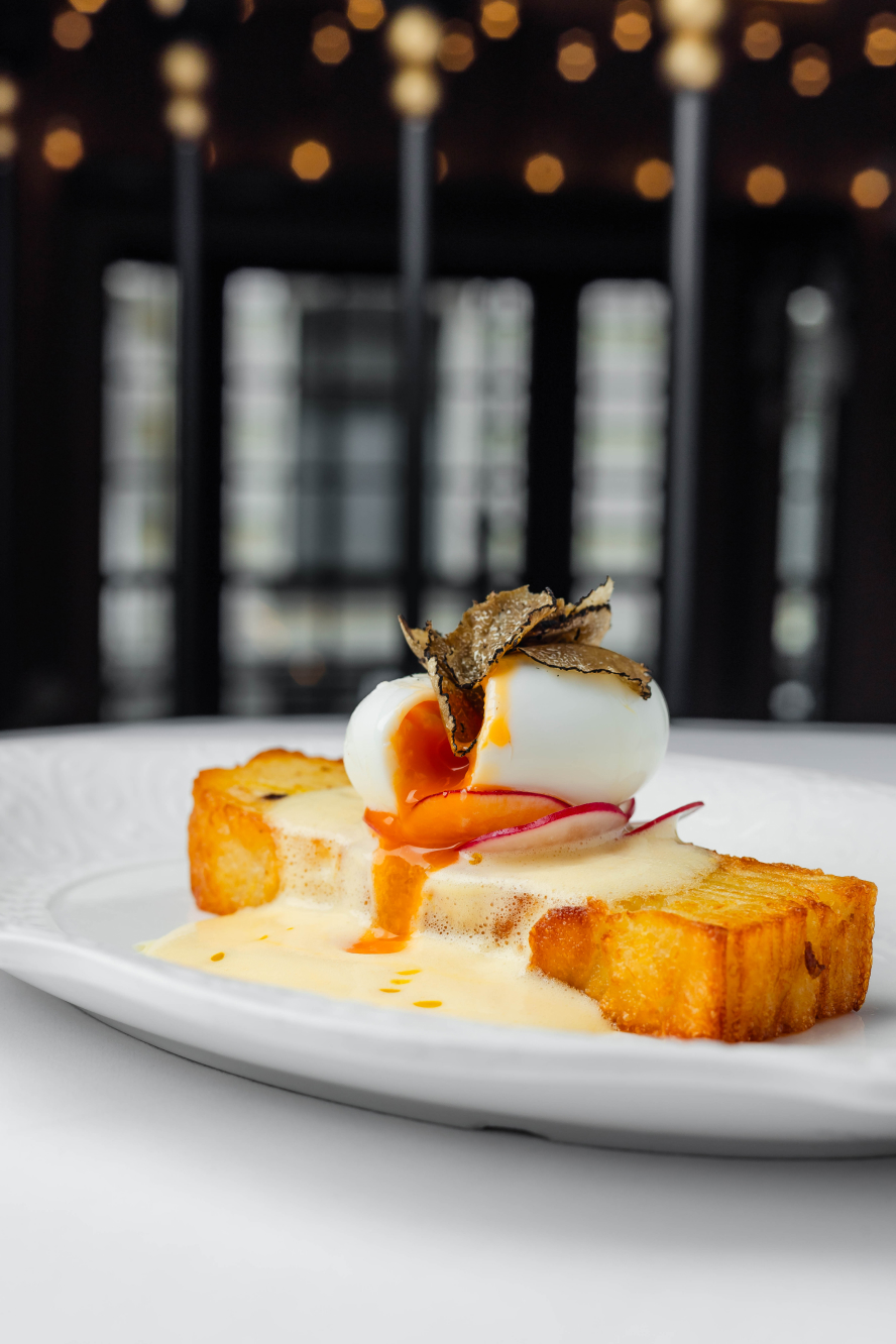 Шеф-повар Ренат Царицанский для меню завтраков не только пересобрал знакомые сюжеты, но и придумал новые сочетания. К французскому картофельному гратену добавил яйцо, трюфель и сабайон, а к индийским лепешкам роти — лосось и авокадо. Бутерброд с красной икрой теперь подают на итальянской чиабатте с ливанским лабне. В меню также вошли два сборных завтрака. В составе первого — яйцо всмятку, тартин, маасдам и ростбиф с соусом вителло-тоннато. А второй более плотный и включает в себя глазунью из двух яиц, поджаренную ветчину из бедра индейки, крем из базилика, салат из пророщенных бобов маш, зеленого горошка и огурца и кенийскую фасоль, приправленную соусом сабайон. В качестве десерта рекомендуем обратить внимание на шоколадное печенье с ванильным кремом, которое подают со стаканом молока, как в детстве.