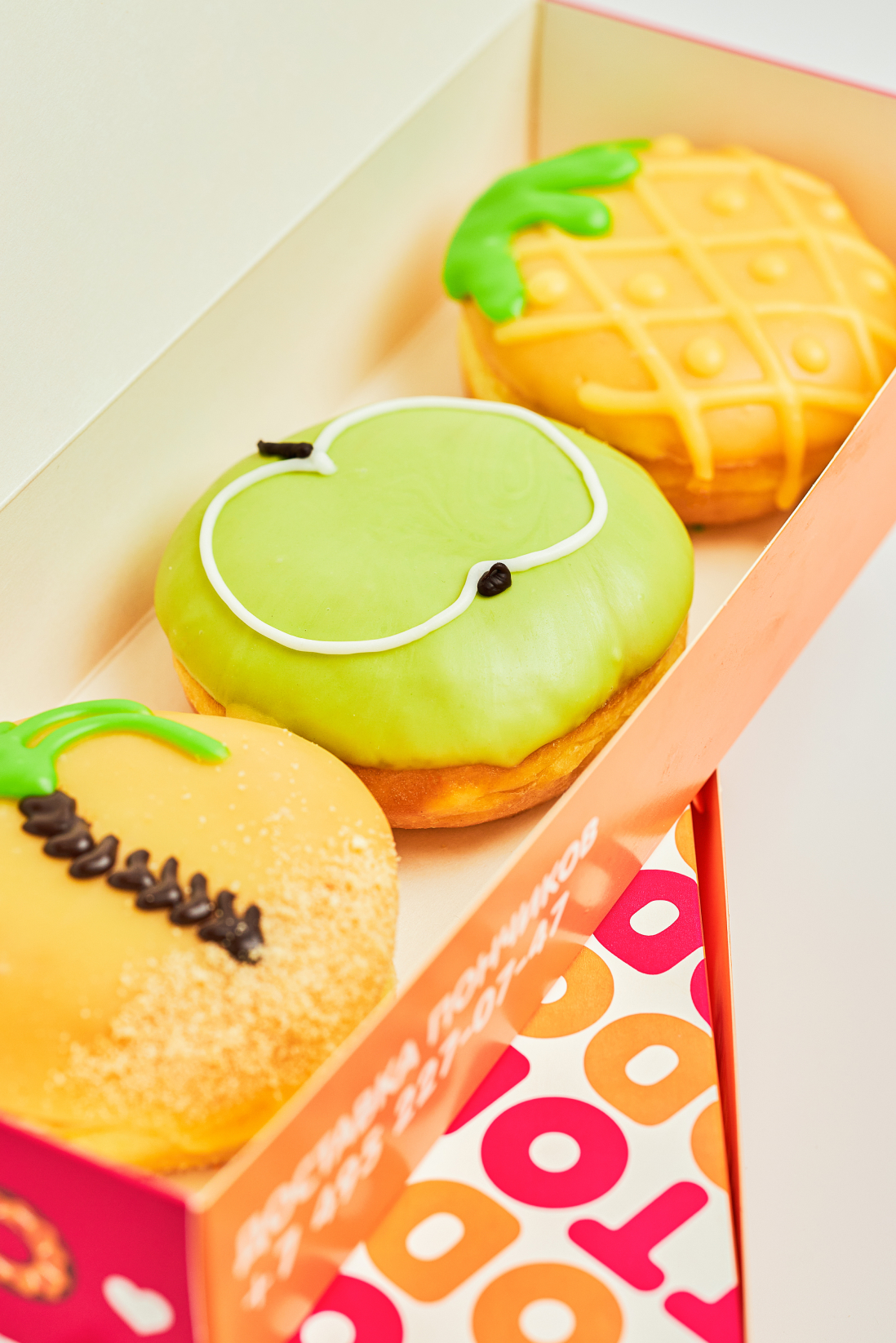 В меню сети появились пончики с летними вкусами тропических фруктов. Например, шеллы с манго и ананасом. Летних напитков тоже стало больше — добавили бабл-ти с личи и алоэ или гранатом, айс-ти «Тропический жасмин» и айс-латте со вкусами «Черника-мята» и «Клубника».