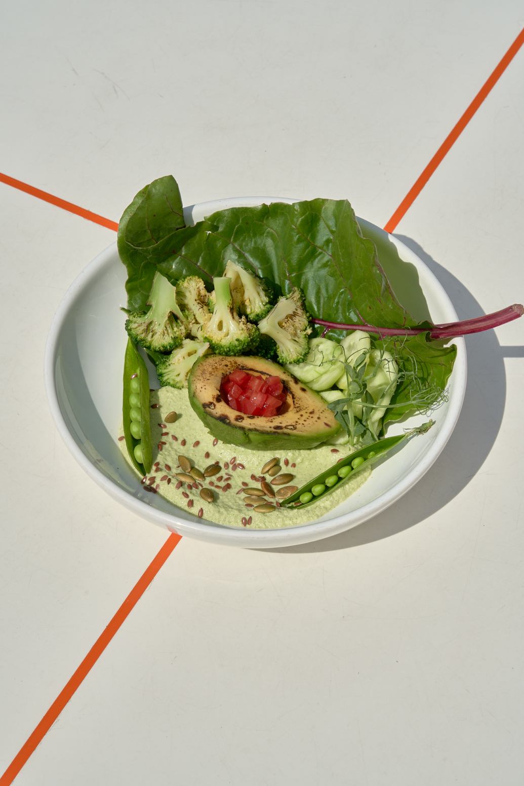Новое меню разработано совместно с гастрономической студией Applied Ingredients — бренд-шефом Иваном Дубковым (КМ20, «Рихтер») и шеф-поваром Станиславом Шургалиным (Stories). В основе концепции — «бистрономия» (понятие, образованное от сочетания слов bistro и gastronomy). Она сочетает в себе первоклассную кухню с непринужденной подачей и атмосферой. В меню около сорока позиций: раздел холодных закусок дополнили сезонные специалитеты в виде ягодного гаспачо с тартаром из клубники и крудо из томатов с овечьим сыром и эстрагоновым маслом. В меню теплых закусок вошел стейк из брокколи и шницель из баклажана, а также гребешки, которых подают с копченым бататом и сморчками. Для любителей холодных супов шефы подготовили окрошку на мацони и щавеле, а также гаспачо с тартаром из клубники. На горячее рекомендуем бургер с крабом, манговым айоли и зеленым яблоком, а вместо традиционной картошки фри — свежие овощи с соусом блю-чиз. А на десерт обратите внимание на теплый пирог с ревенем, малиной и желе из игристого вина.