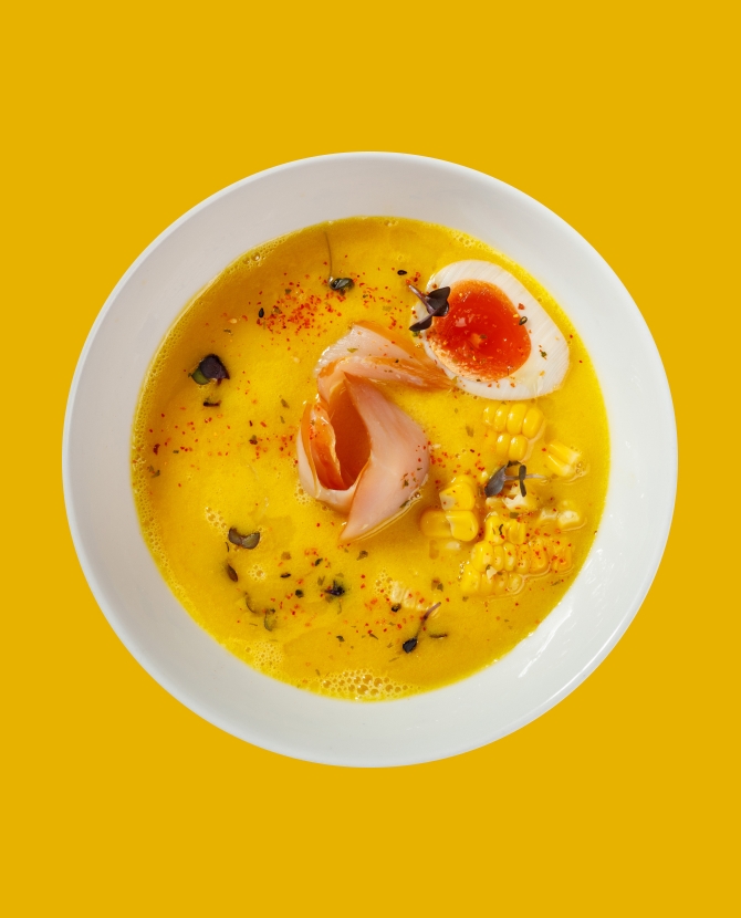 Сезонные обновления меню затронули и [KU:] рамен изакая бар. Рамен-шеф Олег Егоров разработал кукурузный тори-рамен, добавив к нему подкопченную курицу. Обновился и формат изакая, то есть гастробара, предполагающий много небольших закусок. Меню дополнили тыква фри, салат из дайкона и маринованных грибов эноки, цукудани-комбу (водоросли, маринованные в саке). Из сезонных находок — тыква в тонких нитях теста катаифи и поджаренная на масле.