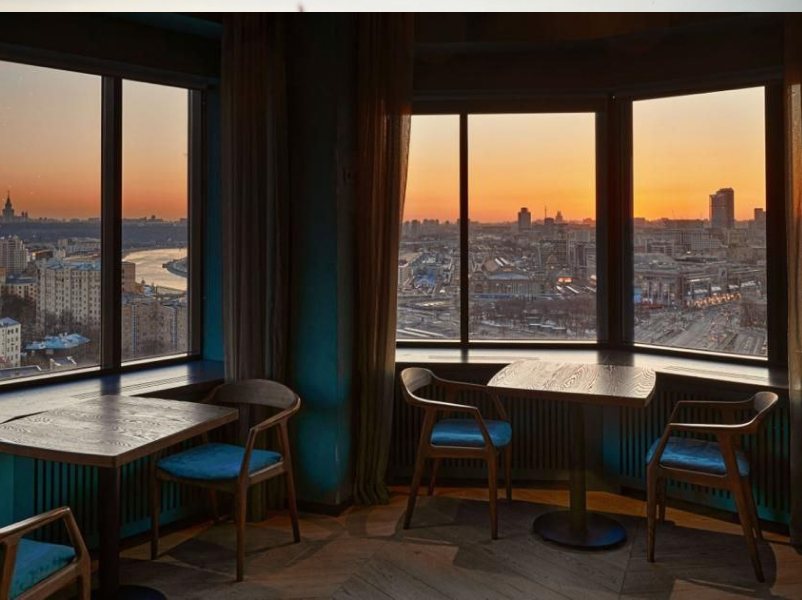 Вторая точка в сети с таким же названием (первая находится в Хамовниках), но в этот раз с приставкой Sky — и она тут неспроста. Ресторан находится на 20-м этаже отеля «Азимут», с которого открывается красивый панорамный вид на Москву и закат. Кухню ставил Евгений Мещеряков, который раньше готовил концептуально-азиатское и морское, а теперь демонстрирует другие свои скилы. Например, здесь он подает шесть разных мезе в качестве закусок к вину (от 250 р.), ризотто с морским гребешком (690 р.) и роскошный антрекот, который можно брать на двоих (1 600 р.). Мясо коптится тут же — пиканья-стейк холодного копчения, ростбиф из индейки, запеченная телятина (все по 590 р., сет за 1 500 р.). Бокалы вина начинаются от 650 р., все из маленьких аппелласьонов. Лайфхак — чтобы сесть у окон, бронируйте заранее. Вам вынесут бинокль, чтобы было чем заняться, пока несут вино.