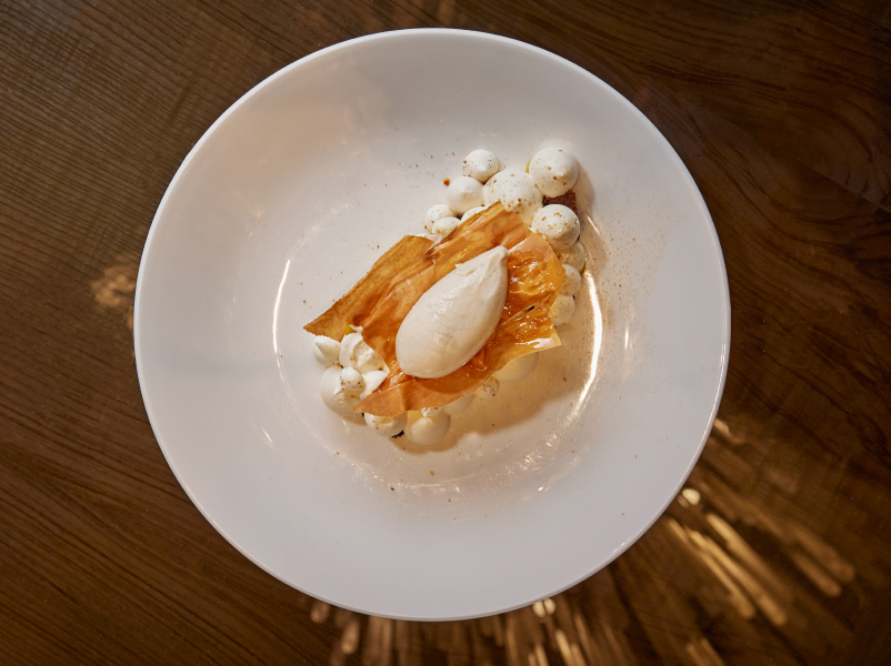 «Пифагор» встречает весну с новым шеф-кондитером Аленой Офицеровой, выпускницей школы Le Cordon Bleu, фирменный штрих которой — нехарактерные и неклассические для десертов ингредиенты. Например, мусс из белого шоколада с кофе и греческим йогуртом она подает с карамелизованной цветной капустой, оливковым мороженым и миндальным безглютеновым крамблом (480 руб.), а чизкейк из феты с шоколадом сервирует мороженым из халвы и карамелизованным арахисом (450 руб.). Еще в десертной карте — «Наполеон» из теста фило с теплым заварным ванильным кремом и мороженым с корицей (450 руб.), шоколадный бисквит с соевым соусом, апельсиновым гелем, маринованным апельсином, каштановым мороженым и меренгой (450 руб.), «зеленое яблоко» (500 руб.) с муссом на белом шоколаде, миндальным крамблом и лаймовым гелем с базиликом.