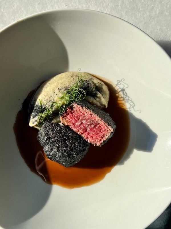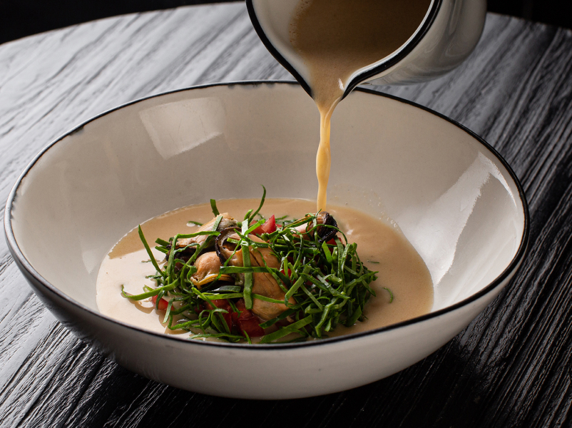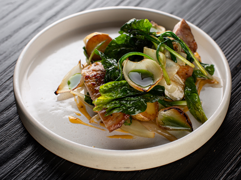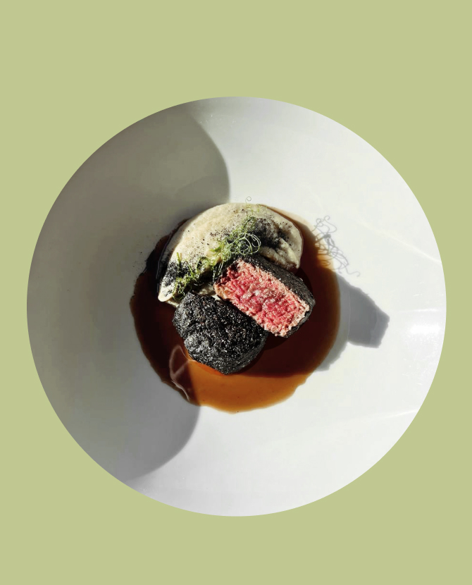 Новый шеф Артем Хижняков придумал двенадцать блюд с акцентом на локальные продукты. Стоит попробовать: запеченный камамбер с алое, белым медом и кинзой (980 р.), сливочный биск с северной креветкой и сладкой бриошью (1 200 р.). К raw-позициям Хижняков добавил обожженную устрицу с фрешем из дальневосточной водоросли ундария (950 р.) и обожженную на углях говядину в пепле из сена с топинамбуром и винным соусом (1 500 р.). Палтус идет в двух исполнениях: глазированный палтусом с щавелем, кремом из пастернака и соусом на солоде (1 450 р.) и с лимонным ризотто и пекорино (1 600 р.). Среди десертов появился взбитый домашний творог с морошкой и облепиховым (520 р.).