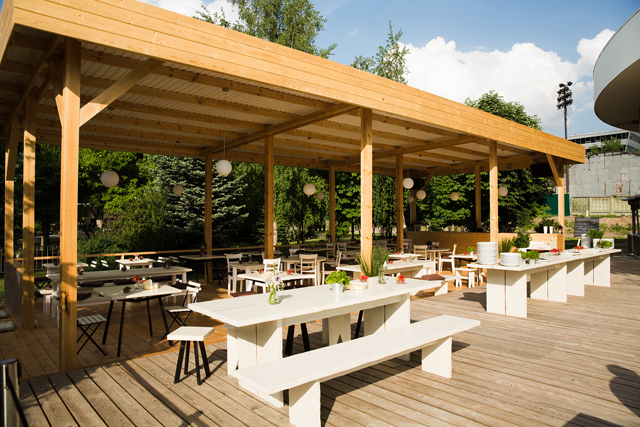 Как и коммунальные службы, которые уже постепенно начинают терроризировать москвичей спонтанным графиком отключения горячей воды, бары и рестораны переходят на летний "режим". В столице повсеместно начинают открываться прекрасные зеленые веранды и деревянные террасы. Мы выбрали 10 оазисов, которые непременно помогут вам укрыться от палящего солнца.