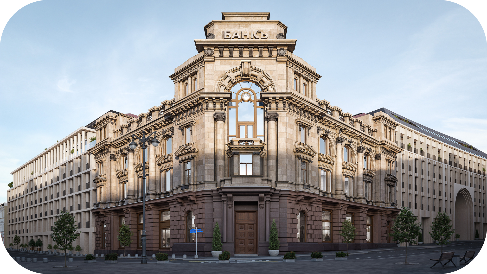 Офис продаж проекта «Рождественка 8» под стать проекту — он расположится в здании бывшего Московского международного банка на углу Рождественки и Кузнецкого моста. Оно было построено в XIX веке архитектором Семеном Эйбушитцем. Проектируя этот неоренессансный шедевр, он сознательно обратился к итальянским прототипам — главным источником вдохновения стал Банк Святого Духа в Риме, построенный в XVI веке. Это первое специализированное банковское здание в Европе.