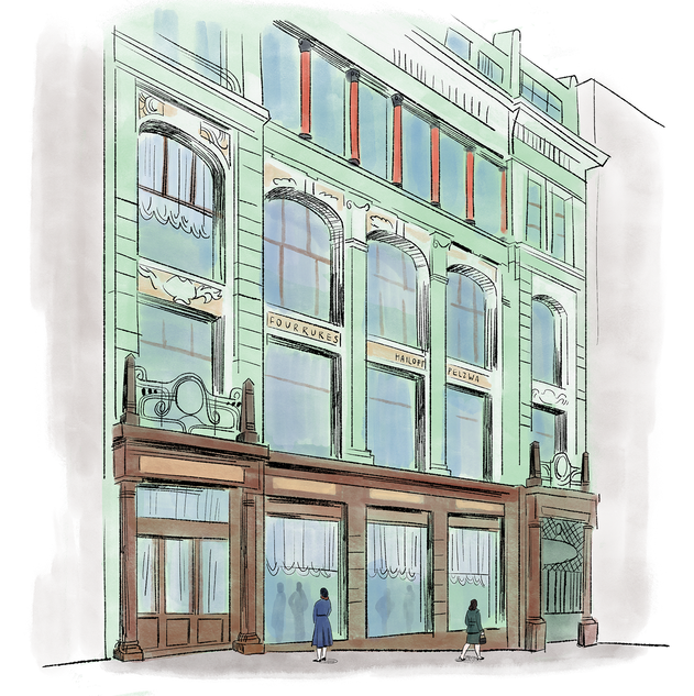 Этот район был самым модным местом города в самые разные эпохи. В 1944 году в здании бывшего мехового магазина Михайлова на Кузнецком мосту открылся Общесоюзный дом моделей одежды — центр советской модной индустрии. Архитектурный шедевр Адольфа Эрихсона, построенный в 1903 году в стиле модерн, идеально подошел для новых задач: просторные залы с кессонированными потолками и мраморными лестницами стали лабораторией советского стиля. Здание сохранило уникальные элементы: золотую смальту в отделке, маскароны в форме львиных голов и немецкие надписи Pelzwaren («меховые товары»), напоминающие о дореволюционной истории.