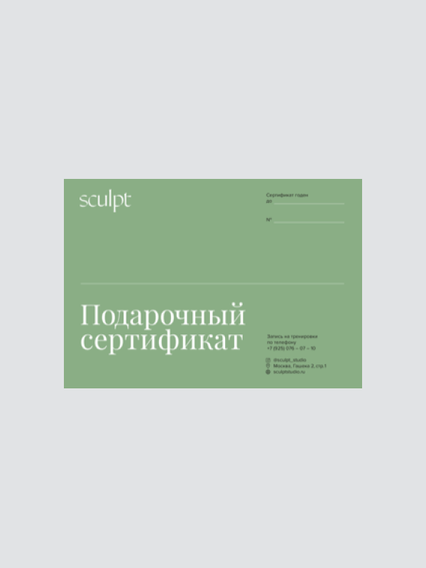 СЕРТИФИКАТ НА ТРЕНИРОВКИ ПО ЛЮБЫМ НАПРАВЛЕНИЯМ, SCULPT