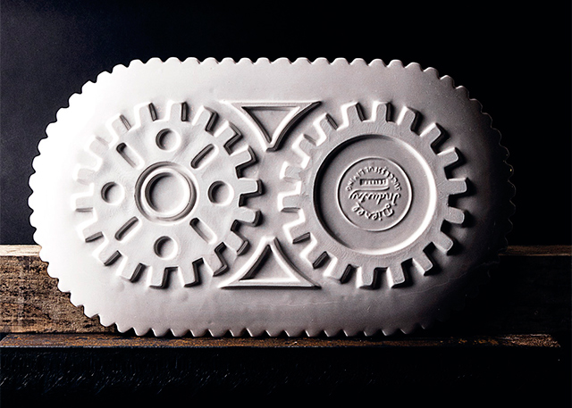 Рифленые края фарфоровых тарелок напоминают нам о механизмах и шестеренках, блюда беззастенчиво демонстрируют внутренности автомобиля, часов, да и вообще чего угодно, где есть две взаимодействующие детали. Глубокие тарелки, контейнеры, стаканы и чашки — все приборы и участники стола явно говорят о том, чем вдохновлялись их создатели. И выглядит это, прямо скажем, высококлассно. Ну а ножи, имитирующие гаечные ключи, и подсвечники в форме поршней занимают особенное место в нашем сердце и виш-листе.