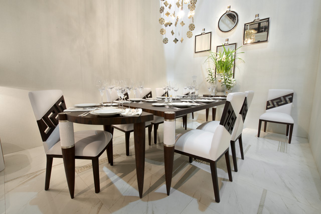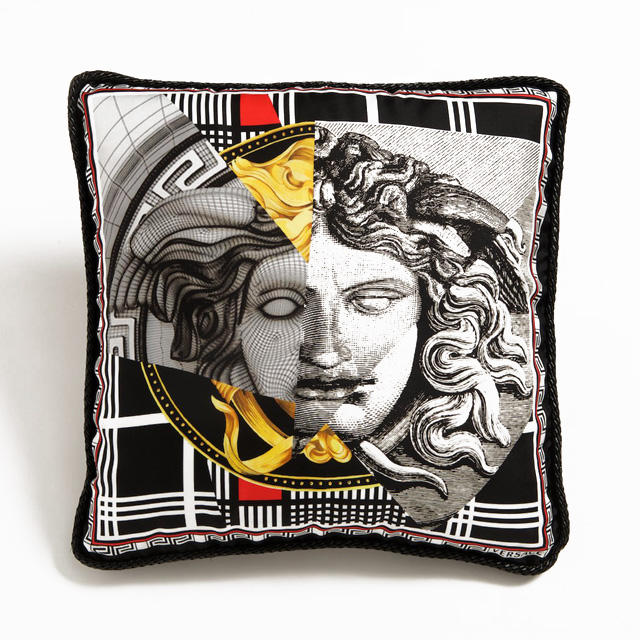 В этом году модный дом представил две совершенно новые линии интерьеров: La Coupe des Dieux и #Greek. В последней безошибочно угадывается связь с женской осенне-зимней коллекцией, которую Донателла показала в феврале. Лейтмотив #Greek — греческий орнамент, соединенный с калейдоскопом ярких букв. Из них складывается категоричное и бескомпромиссное заявление-слоган: VERSACE. Однако красные, синие, желтые узоры и надписи, которые украшают подушки, текстиль, фарфор и настенные панно, — это, пожалуй, единственные яркие пятна линии. В остальном в #Greek доминирует молочно-белый (который, кстати, в этом году был запатентован домом как фирменный цвет Versace). В этой линии Донателла полностью отказалась от золотистых элементов, что для нее, согласитесь, ново, — и отдала предпочтение сдержанному серебру. Еще одна изюминка #Greek — использование в мебели экзотического дерева кордия и оникса, которые идеально вписались в общее настроение коллекции.