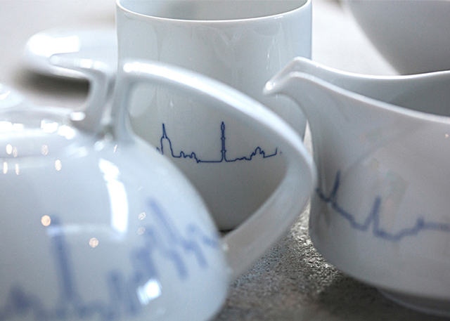 В основе принта новой коллекции фарфоровой посуды Big Cities лежат силуэты горизонтов двенадцати мировых мегаполисов, включая Копенгаген, Лондон, Париж, Берлин и Нью-Йорк. Непрерывные линии на кромке тарелок и чашек вырисовывают узнаваемые силуэты самых известных достопримечательностей мира: Биг-Бена, Эйфелевой башни, Брандербургских ворот и многих других. Каждый предмет из новой столовой коллекции доступен в шести вариантах дизайна и "городского" оформления. Фарфоровые "холсты" изготовила компания Rosenthal.