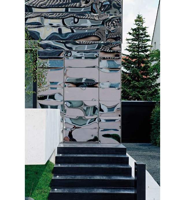 Циммерману выпала непростая задача — реконструировать 50-летний дом в современную резиденцию для супружеской пары. Так как изменить пропорции постройки, не разрушив ее, было невозможно, архитектор добавил пустоты в интерьеры помещений при помощи дополнительного света и обил фронтальный фасад здания панелями из полированной нержавеющей стали, которые, как в кривом зеркале, отражают пространство вокруг дома.