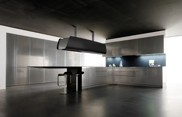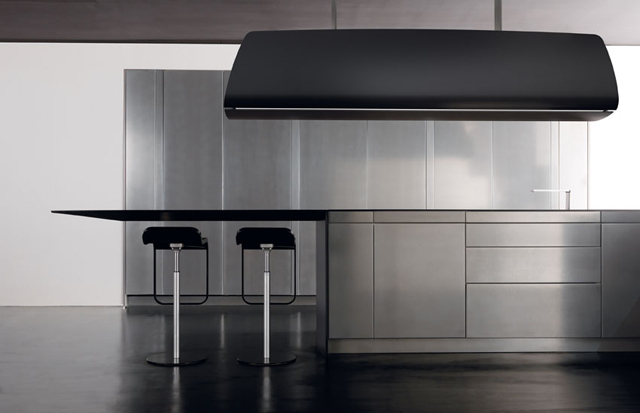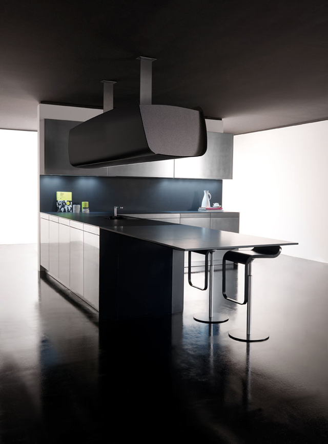 Кухонные шкафы и полки маскируются под медиатеки. Идея "исчезающей кухни", простой и умной, с успехом реализуется в интерьерах с открытой планировкой. Высокотехнологичная Invisible производит впечатление своей конструкцией. Создать ее позволил карбон — этот материал дизайнеры студии Carlesi Design впервые применили как структурный, а не только для отделки. Композит на основе углеродного волокна отличается легкостью и прочностью, он сверхустойчив к механическим повреждениям и химическим веществам. Особая лакировка из жидкого металла и полное отсутствие ручек делают кухню и правда невидимой. В Invisible интегрированы сенсорный экран с веб-соединением и система объемного звука.