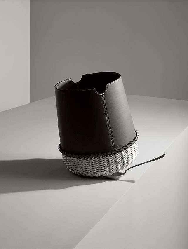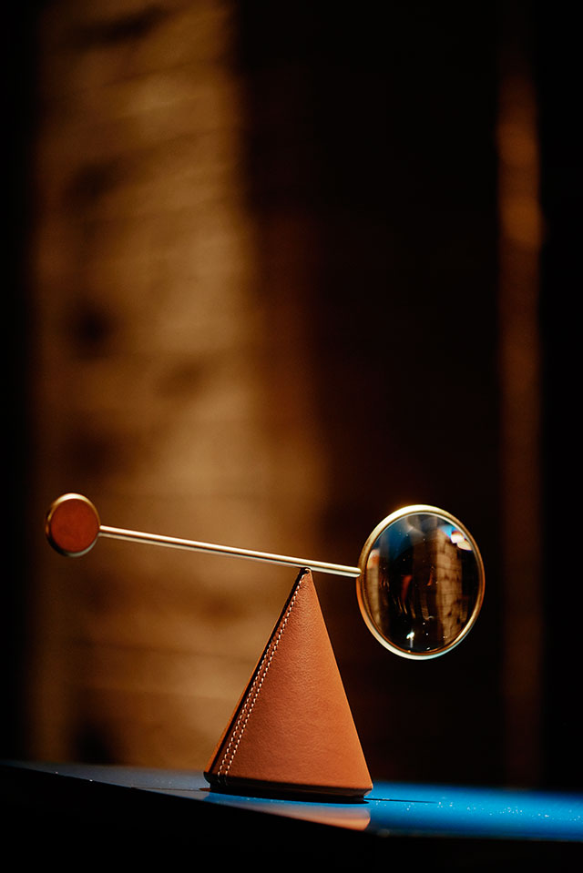 Помимо обстоятельной «статичной» мебели в линейке под названием Pippa можно найти складное режиссерское кресло и кушетку с кожаным матрасом. Equilibre d’Hermès — аксессуары и предметы для дома, созданные Hermès при участии дизайнеров Гийома Дельвина, Жоржа де Лаффоре и Дэмиена О’Салливана. Здесь собрались канцелярские предметы вроде корзины для бумаг и подставки для журналов и книг, а также подносы для мелочей и лупа.