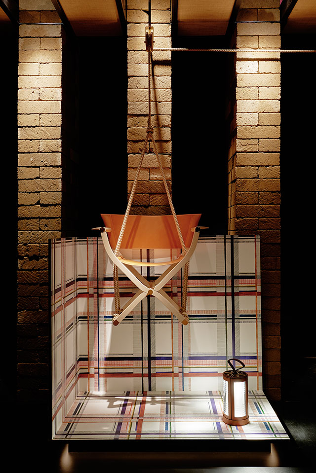 Текстиль и мебель от Hermès — диваны, кресла, пледы, ширмы, подносы — традиционно выполнены из натуральных материалов: дерева, кожи и, например, твида. Не обошлось и без фирменного принта в виде лошадей.