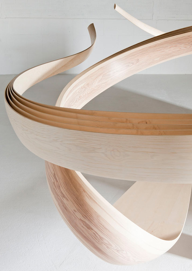 Ирландский мебельщик и дизайнер-самоучка Джозеф Уолш известен,в первую очередь объектами, которые производятся либо в единичном экземпляре, либо очень ограниченной серией. Узнать работу Уолша из множества других очень просто — у дизайнера ярко выраженный, ни на кого не похожий стиль, при котором объекты, выполненные из дерева (основного рабочего материала), приобретают футуристичный вид и буквально оживают благодаря прорезям и мягким переплетениям. Создается полное ощущение того, что работы Уолша — это гости из другого мира, настолько причудливы и необычны их формы.