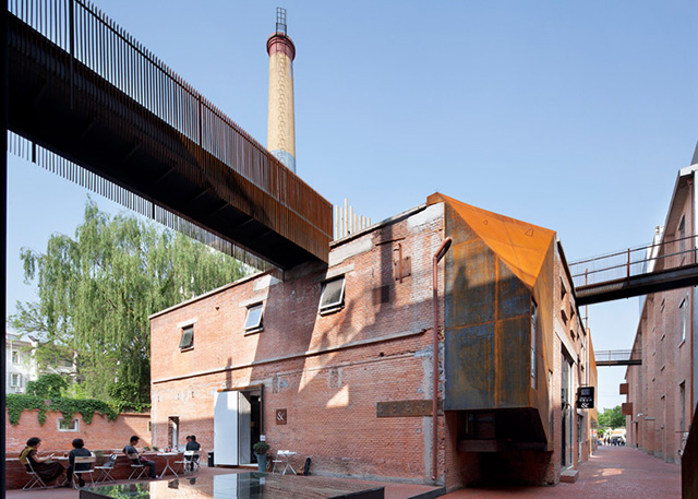 Эта фабрика находится в одном из арт-кварталов Пекина, так что ее новая функция ничуть не удивила местных жителей. Многие пустынные склады здесь давно преобразованы в художественные галереи и выставочные залы. Специалисты бюро Origin Architect получили задание создать многоцелевой центр культуры и искусства, опираясь на концепцию театра.