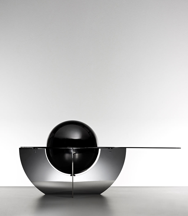 Столик Boullée назван так в честь архитектора Этьен-Луи Булле, творившего свои космические, пришедшиеся не ко времени работы аж в XVIII веке. Его эскизы как будто перепутали время рождения и вместо XXI века появились на три столетия раньше. Главная, но оставшаяся в виде проекта работа автора — надгробие для Исаака Ньютона — и по сей день вдохновляет дизайнеров на футуристические идеи. Так, дуэт Brooksbank & Collins создал прекрасный стол в трех цветовых вариантах по мотивам эскизов архитектора.