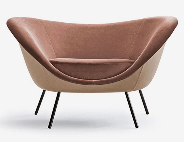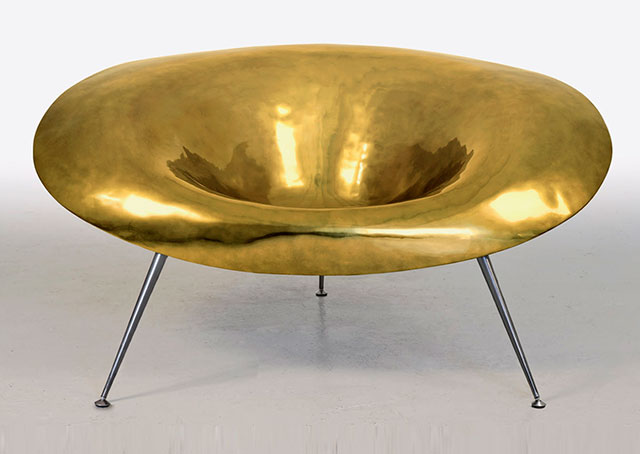 Много бархата цвета сочной горчицы показал B&B Italia, а Imperfetto Lab довел «золотую» тему до абсолюта, представив свое «золотое» кресло Nido.