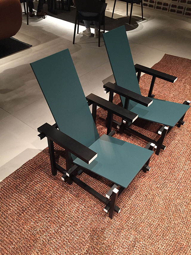 Поскольку я много работаю с итальянскими фабриками, для меня всегда было большой загадкой, почему они так долго не замечают это веяние. Но лучше поздно, чем никогда. И вот iSaloni-2016 демонстрирует настоящий пик «нового ретро». Здесь и обычно умеренный Minotti с мраморными столиками, окантованными огромными латунными стенками, и Poliform со множеством бархатных обивок модных «пыльных» оттенков. На выставке повсеместно встречается множество икон дизайна в новых оттенках и материалах, например знаменитый стул дизайнера Джо Понти для Molteni&C в новой обивке в серо-розовом цвете или «Красно-синий стул» Геррита Ритвельда, который перестал быть красно-синим на стенде, — Cassina выпустил его в модном тоне «пыльная мята».