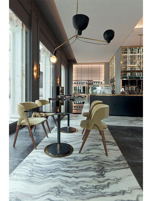 Самое главное и предсказуемое открытие с точки зрения дизайна, которое моментально замечаешь: тренд new retro завладел умами подавляющего числа производителей. При входе на любой стенд современной мебели можно смело закрыть глаза и назвать несколько основных признаков этого тренда, которые присутствуют среди новинок. С большой вероятностью вы попадете в точку. Это всегда будет сочетание мрамора, латуни и бархата пыльных оттенков.