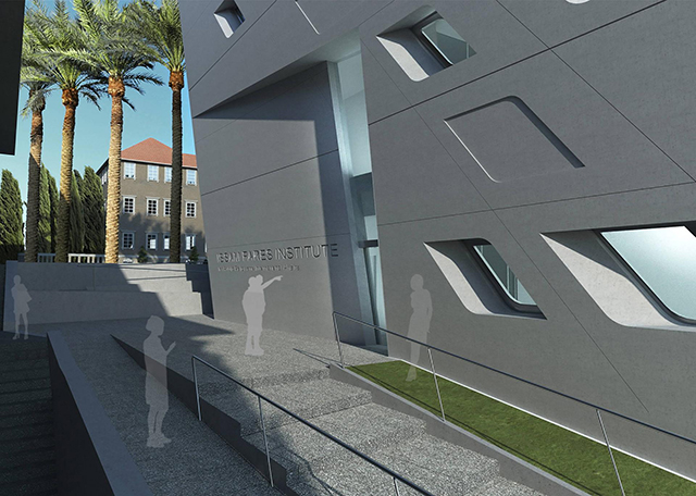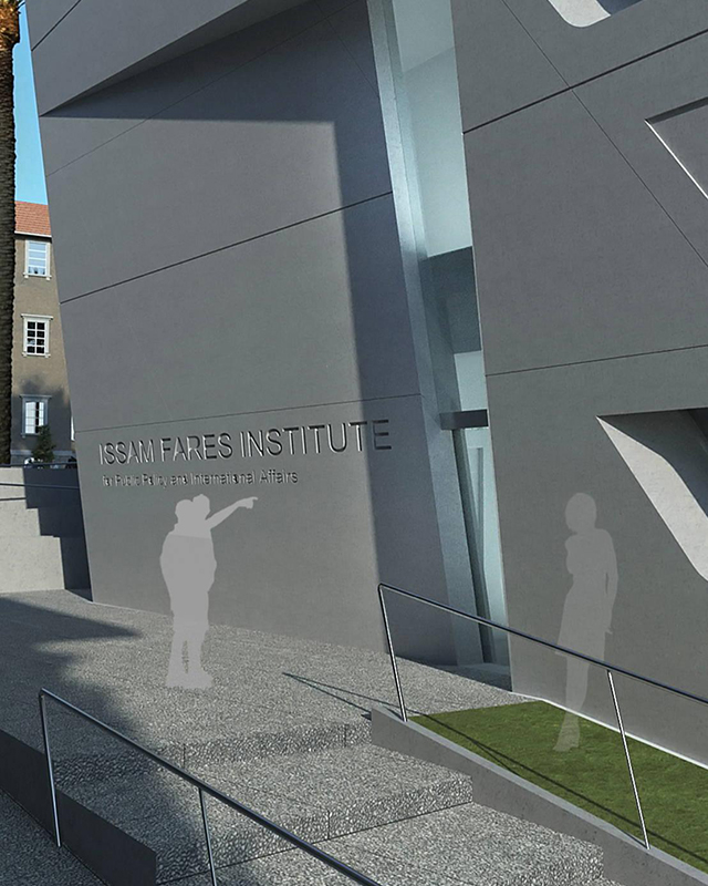 Шестиэтажное здание Института политики и международных отношений имени Иссама Фареса стало идеальным воплощением "запросов" Бейрута: подобно ближневосточному городу, новый кампус отражает окружающий ландшафт и сочетает в себе все необходимые объекты. На верхних уровнях расположились кабинеты исследователей, лаборатории, аудитории для семинаров и лекций, а также читальный зал. Отличительной чертой проекта стала верхняя часть здания, далеко выступающая за границы основного фасада. Внутренние помещения института связывает огромный атриум, который (в духе Хадид, конечно же) пересекают всевозможные лестницы и мостики, соединяющие разные этажи. Для максимальной звукоизоляции главная аудитория построена под землей.
