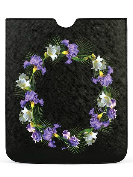 Сегодня объектом желания мы выбрали чехол для iPad от маэстро Рикардо Тиши. Кожаная папка Givenchy с двух сторон украшена яркими иллюстрациями. Сначала взгляд приковывают контрастные цветы сиреневого оттенка — распустившиеся ирисы, затем внимание плавно переходит на рисунок с акульей челюстью.