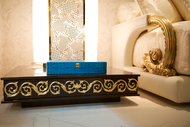 Если стиль линии Via Gesu’ Донателла определила как "королевский шик", то остальная часть коллекции — это настоящий глэм-рок. Чего стоит одна только кровать Vanitas Eco’, которая полностью (в том числе матрас!) выполнена из черной кожи. Так в философии Versace кровать перестает быть тривиальным спальным местом и становится фетиш-объектом. В целом новая интерьерная коллекция очень соответствует духу Versace: яркие цвета, обилие золота и традиционные барочные принты. Все предметы интерьера выполнены из благородных материалов: серебра, сусального золота, кожи, бархата, шелка, мрамора и ценных пород древесины.
