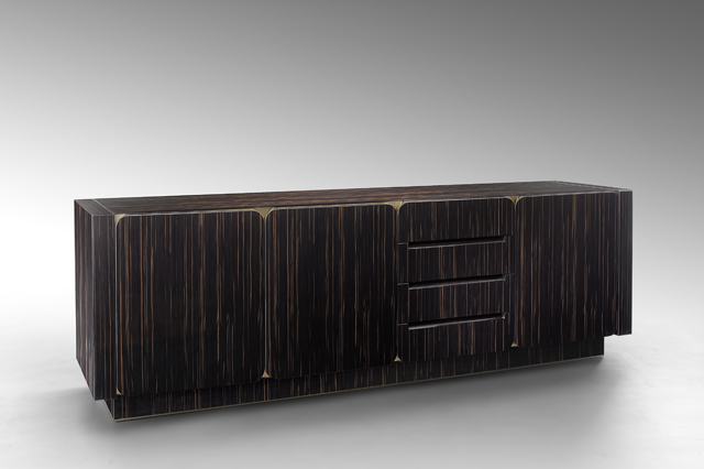 Главная изюминка Stardust — стол Star Table. Его поверхность выполнена из массива черного дерева — макассара. В центр столешницы как будто "врезается" вставка из латуни в виде звезды. Четырехконечную форму повторяет ножка стола, обрамленная кромкой из латуни и сделанная из того же макассара.