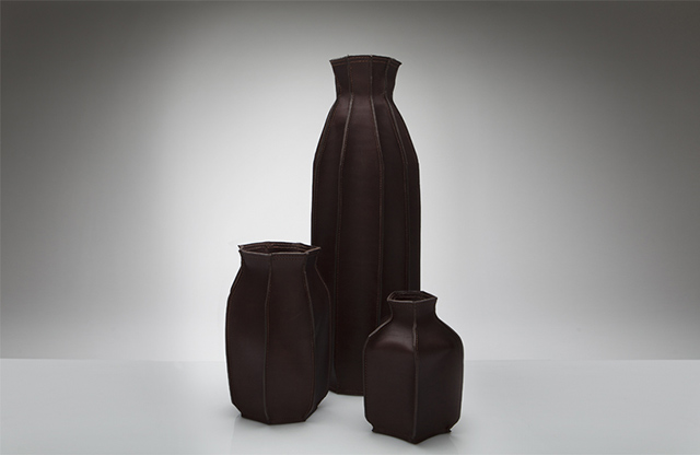 Кажется, что кожаная ваза — это совсем не практично, но создатели продумали все до мелочей и сделали ее основу резиновой. Так что вазы — долговечные и водонепроницаемые. Каждая из них сделана из расширительных мембранных баков для водоснабжения — они-то и вдохновили дизайнеров.