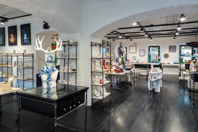 Здесь можно найти колье из муранского стекла наподобие того, что носит директор МАММ Ольга Свиблова — ее любимое украшение создано дизайнерами Мариной и Сюзанной Сент. Валерия Роднянская и Юлия Гельман собрали в "Шалтай-Болтае" превосходную коллекцию предметов, произведенных на небольших европейских мануфактурах — это второе направление магазина. Здесь можно найти изделия из стекла, дерева, керамики, фарфора, отобранные на сувернирных выставках по всему миру, а также картины, свечи, блокноты и футболки — без подходящего подарка из магазина уйти сложно.