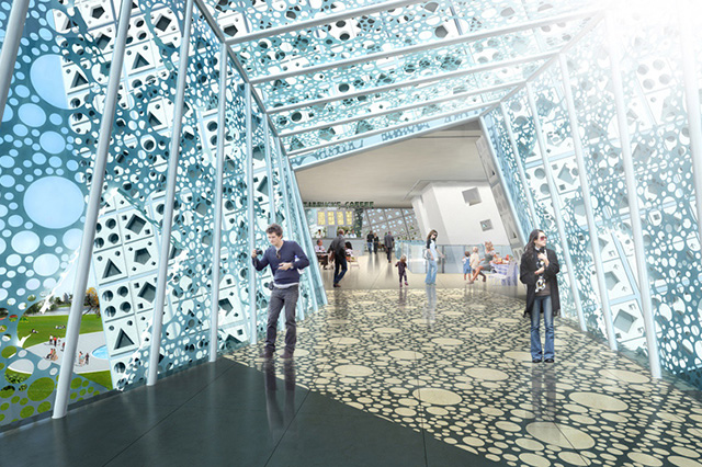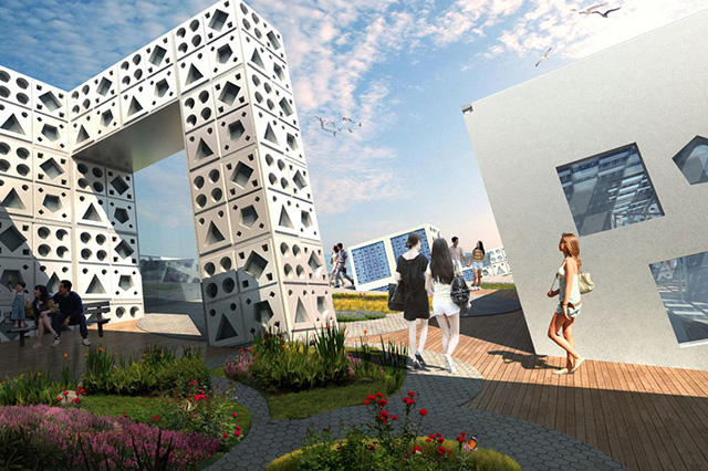 Архитекторы EAE спроектировали инновационное здание главного офиса Научного парка в Гонконге, получившее название Cube. Многофункциональное сооружение будет выполнено из низкоуглеродистых материалов, с помпезным входом и гармоничным соседством с близлежащими постройками. Одной из основных целей куба станет максимальная переработка солнечной энергии и обеспечение электричеством всего объекта, за исключением розничных магазинчиков и кафе на нижнем уровне. Для этого на наклонной крыше здания появятся фотоэлектрические панели, а чуть ниже, на четвертом и пятом этажах, — генераторы. Кубическая штаб-квартира будет соединена подвесным мостом с уже существующим корпусом, олицетворяя тем самым общность всего архитектурного комплекса.