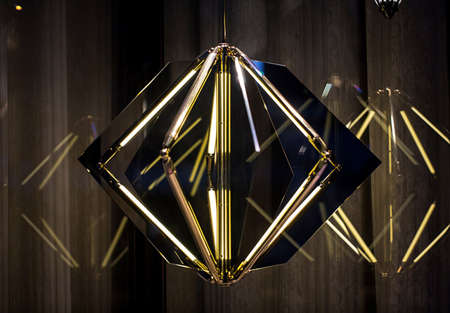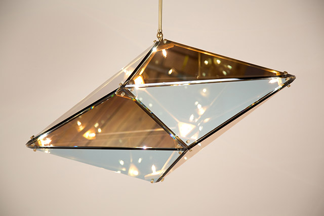 В светильнике Maxhedron использован схожий принцип, корректирующийся лишь формой стеклянных и зеркальных элементов.