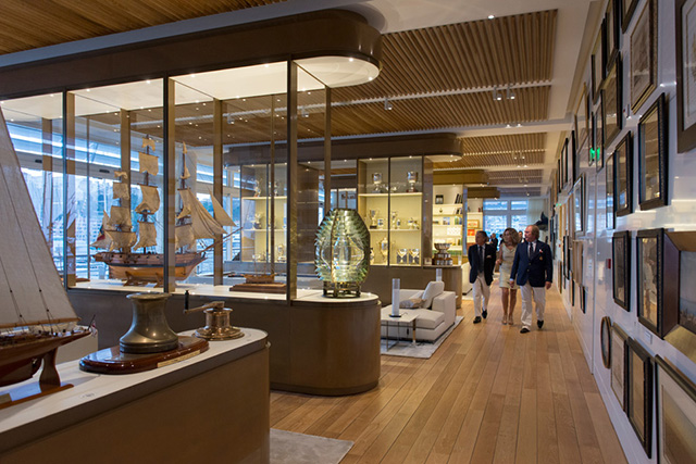 Верхнюю "палубу" венчает открытая терраса флагманского ресторана клуба, предназначенная для проведения различных светских мероприятий, которыми Монте-Карло так славится. Окна "в пол" позволяют гостям Yacht Club de Monaco, даже находясь внутри здания, наблюдать за ходом той или иной важной парусной гонки и спокойную живописную акваторию.