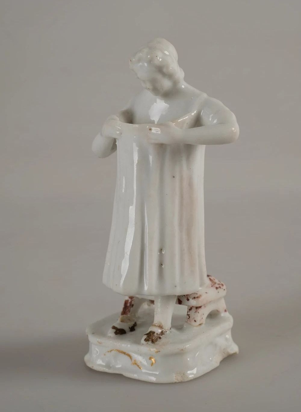 В Россию такие статуэтки пришли из Европы в XVIII веке, куда, в свою очередь, попали из Китая. Когда европейцы познакомились с фарфором, образцы привозились с его родины — из Китая, в том числе и маленькие эротические статуэтки со всевозможными видами соития. При Петре I Россия открыла для себя не только табак и европейские моды, но также кобальтовый фарфор из Дельфта, подражающий китайскому. Наши статуэтки копируют эротические сюжеты, представленные во французском и немецком фарфоре XVII — XIX века, — они пришли из Европы и легли на русскую почву.Производились они почти на всех российских заводах; делались без маркировки, чтобы не выдавать производителя. В том числе изготавливались и в Гжели — кстати, сейчас завод продолжает выпускать те самые эротические. В позапрошлом веке часто бывало так: мастер увидит на ярмарке фигурку, слепит такую же и пойдет продавать на ту же ярмарку. Статуэтки были маленькими — чтобы уместиться в ладошку или карман, продавались с рук, стоили недорого. Но это не тот фарфор, что вы могли видеть у бабушки в серванте, — эти фигурки были частью закрытой эротической культуры, которая оставалась в тени и в России, и в Европе.