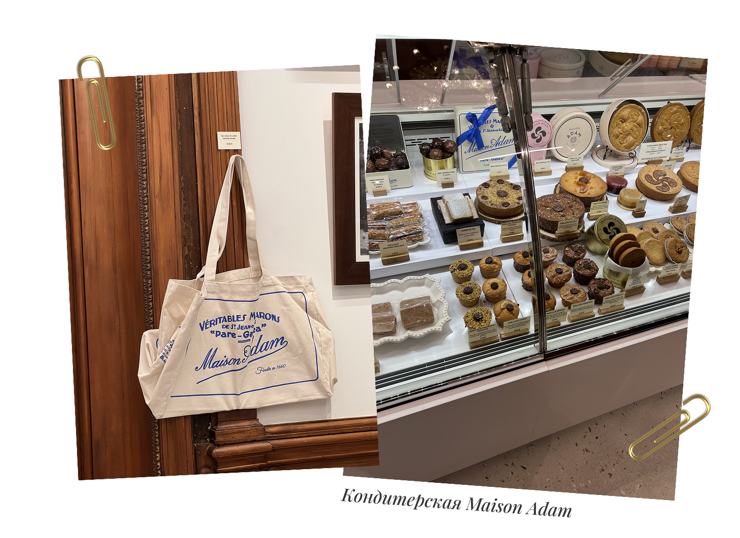 Климат Биаррица идеально подходит, чтобы пробовать локальные блюда с акцентом на свежайшие морепродукты и мясо. Дегустировать здесь хочется (и я призываю не отказывать себе в этом) все. В число культовых локаций заносим Pepite Cookie — небольшую пекарню, ставшую настоящим символом города. В соседнюю кондитерскую Maison Adam, одну из старейших во Франции, заглядываем за знаменитым баскским печеньем, которое появилось в Биаррице в 1660 году и с тех пор завоевало сердца сладкоежек по всей стране. Fun fact: именно здесь готовили десерты для свадьбы Людовика XIV. Вдобавок в Maison Adam можно найти стильные хлопковые шопперы с фирменной символикой.