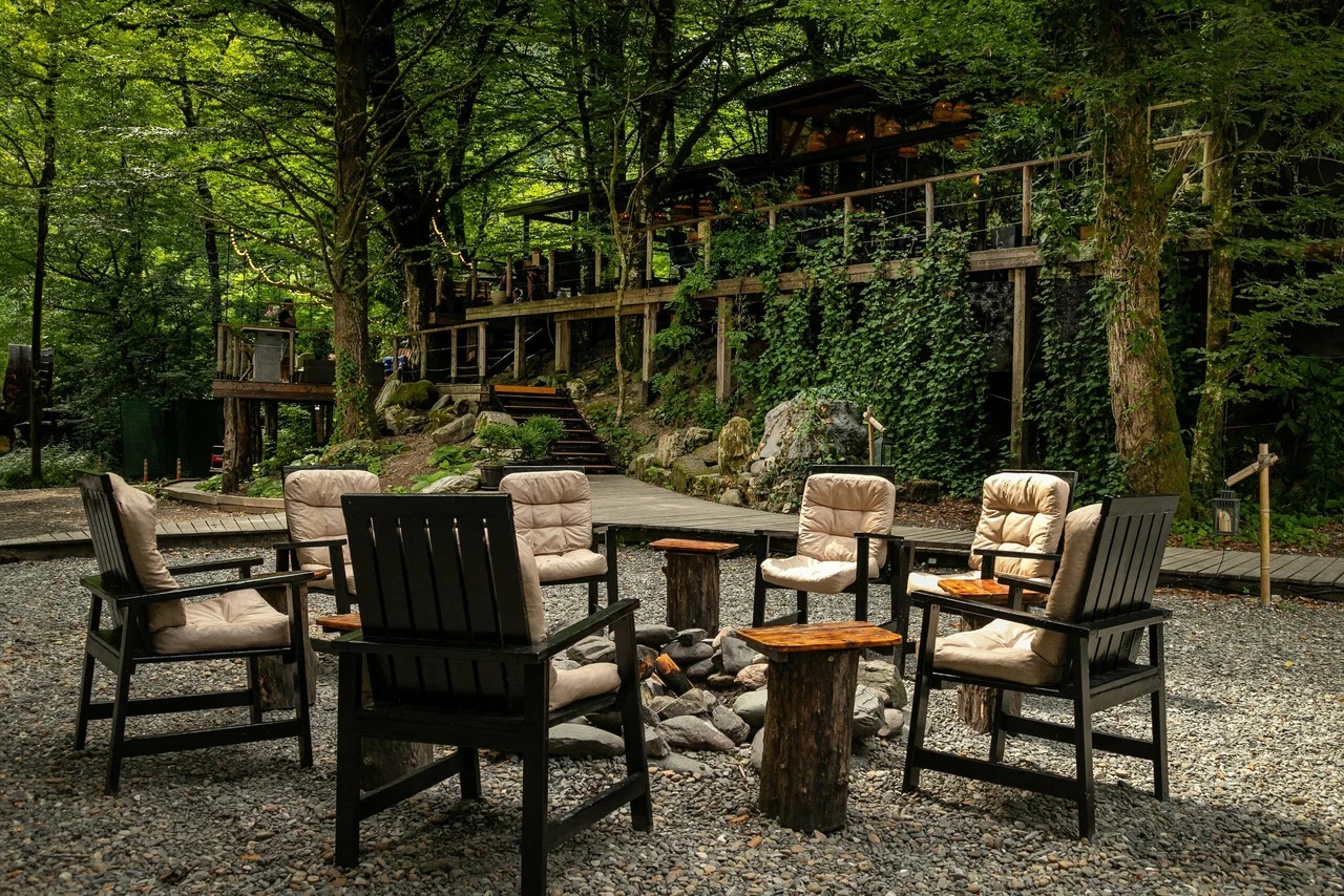 На берегу горной реки Чвижепсе, среди реликтового леса скрывается глэмпинг «Лес» — пространство для тех, кто ищет баланс между уединением и высоким уровнем комфорта. Вместо палаток — просторные тент-хаусы с душем, кондиционером и мебелью ручной работы, а утреннюю тишину здесь нарушает разве что шум воды и стрекот кузнечиков.
