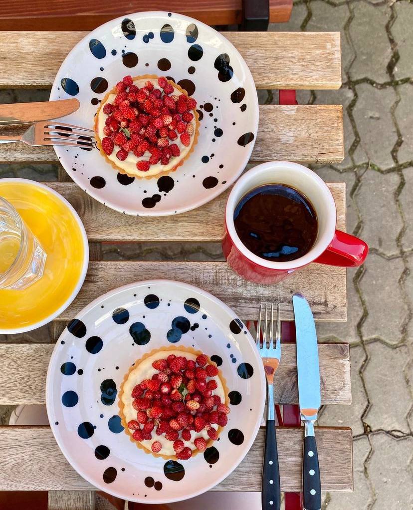 Начинаем знакомство с городом, конечно же, с завтрака — в Muru. В уютной кофейне, которая расположилась в кирпичном домике на улице Розы Люксембург, завтраки подают весь день.