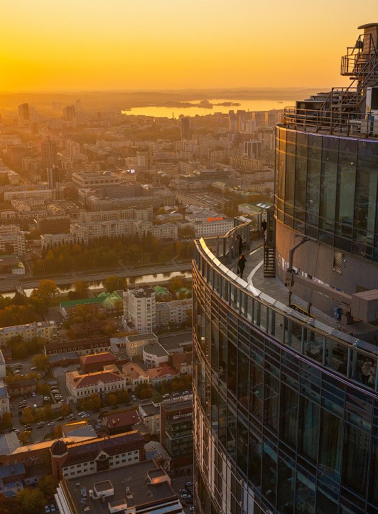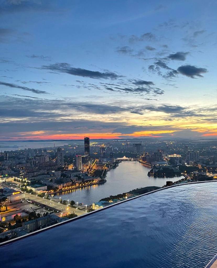 После свежей выпечки и кофе предлагаю оценить масштаб города и посмотреть на него с высоты. В восьми минутах ходьбы в небоскребе «Высоцкий» на 52-м этаже есть смотровая площадка. Отсюда панорама Екатеринбурга видна на 25 километров вдаль.