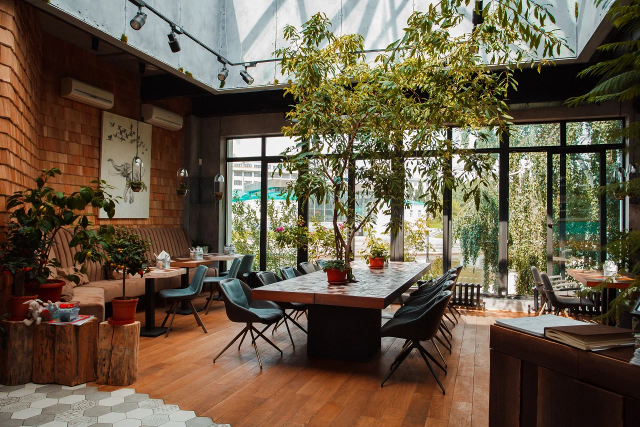 Пообедать и перевести дух можно в «Бюро находок» — с 12:00 до 17:00 здесь отличные бизнес-ланчи. В пространстве стильно, много света и зелени.
