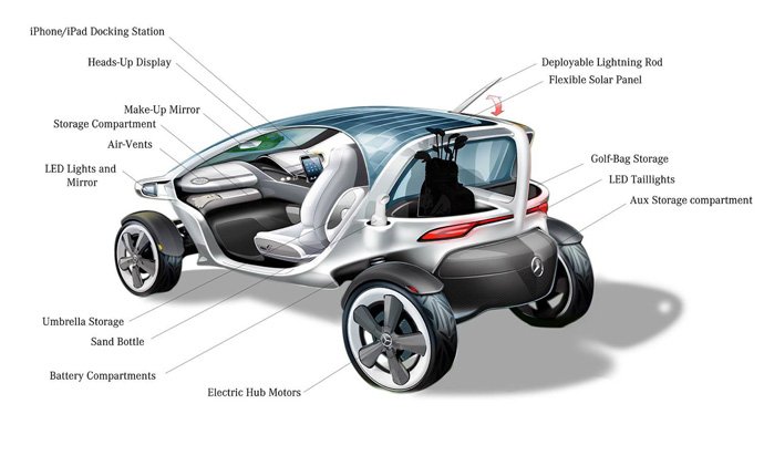 "Вперед в будущее", — похоже, именно такой слоган использовала компания Mercedes, представляя на профессиональном снукерном турнире British Open 2103 концепт гольф-машины нового типа.