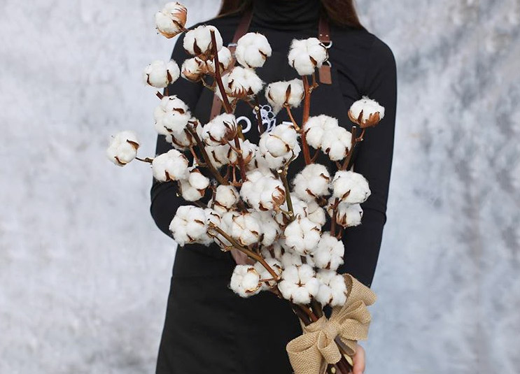 Еще один способ украсить интерьер — использовать ветви хлопка. Его пышные белые бутоны можно собрать в моно-букет или сочетать с сухоцветами. Несмотря на кажущуюся хрупкость, ветки хлопка прослужат вам долго — главное избегать запыления.