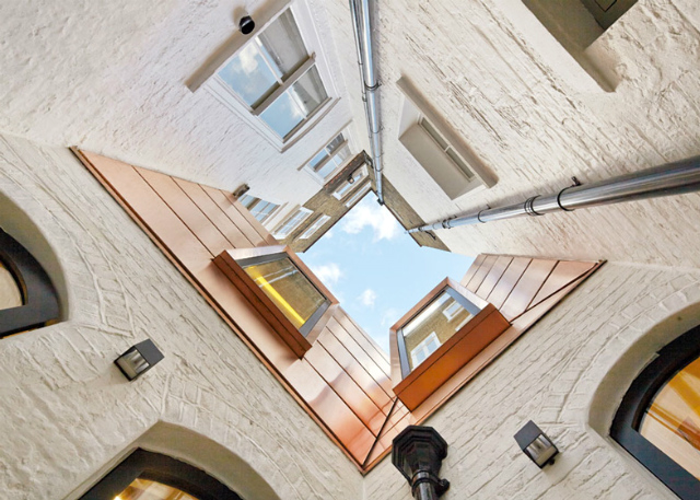 Британские архитекторы из бюро Emrys Architects расширили офис компании недвижимости GMS Estates, который занял два строения на улице Great James Street в районе Блумсбери. Во дворе-колодце появилась медная "гора", которая соединила офисные помещения в соседних домах. Нам тут же вспомнился золотистый корпус Лувра под названием "Галерея Ислама", укрывшийся под защитой основного здания.