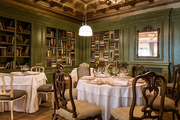Сам особняк располагается на модных Патриарших. Шеф-повар ресторана Джузеппе Дави подготовил праздничное сет-меню, куда войдут королевские креветки «Термидор», ризотто с бурратой и черным трюфелем, тальята из тунца с капонатой по-сицилийски, а еще десерт со скорее новогодним названием — «Мандарин». К этому сету каждому гостю по праву полагается бокал шампанского.