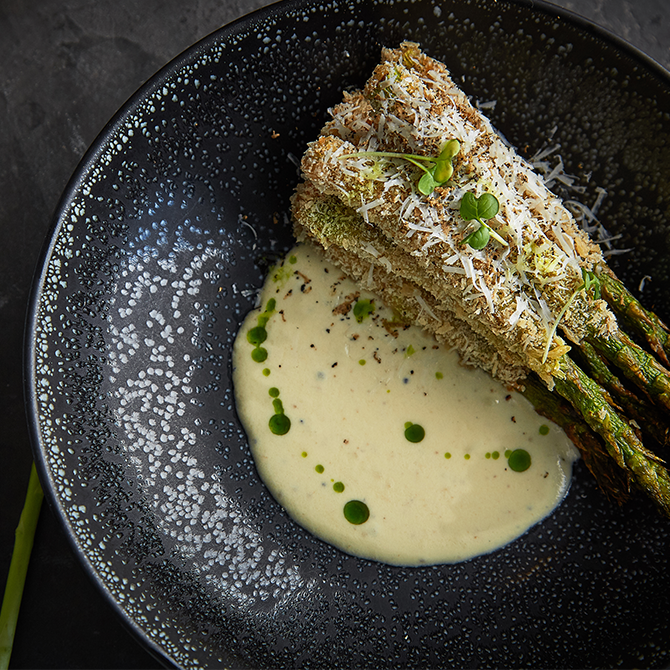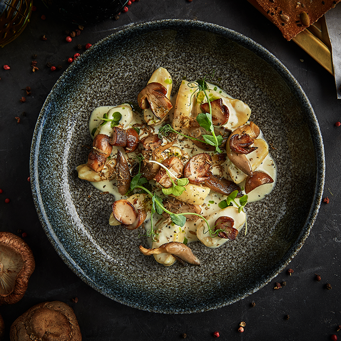 Бренд-шеф ресторана Михаил Кукленко разработал специальный набор блюд с уклоном в Италию, куда входят шесть позиций с черным трюфелем. На завтрак есть омлет с теплым авокадо и трюфелем — 920 руб. Для мясоедов — карпаччо из мраморной говядины с черным трюфелем (1 450 руб.), говяжья вырезка medium rare с брокколини с черным трюфелем (1 450 руб.), ньокки с обжаренными белыми грибами и черным трюфелем (950 руб.). Для вегетарианцев — хрустящая спаржа, обжаренная до золотистой корочки, с посыпкой из пармезана и черного трюфеля (1 100 руб.), горячая закуска — цукини флан с трюфелем и соусом из пармезана и кремом из козьего сыра (850 руб.). Также трюфель можно взять добавкой отдельно: за 1 грамм просят 350 руб.