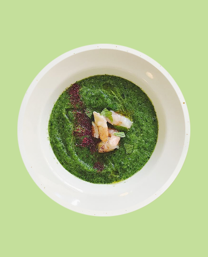 Бренд-шеф ресторана Modus, пионер отечественной гастроботаники, Андрей Колодяжный придумал полезное меню из 11 новых блюд. Среди них земляничный суп с мороженым из тульского пряника и кавказским цицматом (740 р.), щи из черешни с креветками и фиолетовым пак-чой (810 р.) и крем-суп из лисичек с сыром дорблю (870 р.). Картофель с лисичками обжаривается с цветами чабреца и тимьяна (520 р.), варенье из ревеня идет в «белый» десерт из козьего молока и кокоса (760 р.), земляника ярче раскрывается на фоне лимонного тимьяна в качестве начинки для тарталетки со сметанным кремом (990 р.), а сразу из трех видов капусты шеф готовит ароматное ризотто (680 р.).