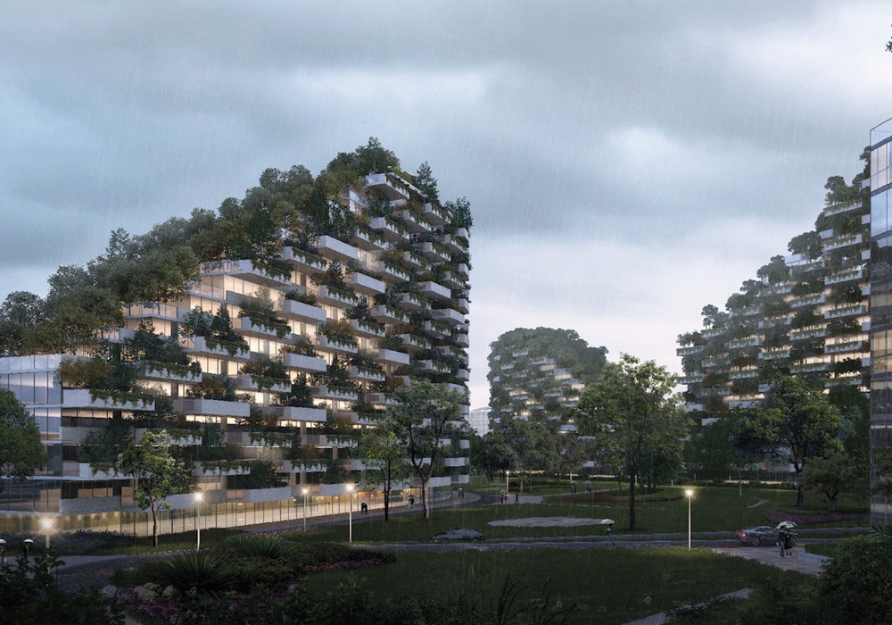 В Китае появится город-лес Liuzhou Forest City. Концепция постройки заключается в том, что фасады зданий будут полностью покрыты растениями. На территории 175 гектаров высадят 40 тысяч деревьев и один миллион растений ста разных видов.